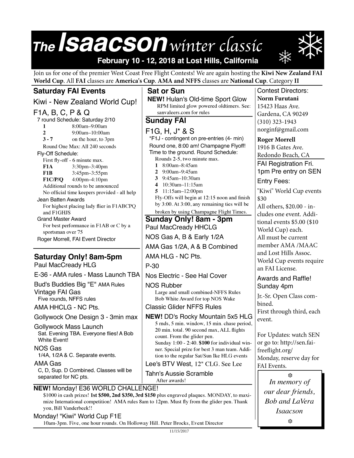 Entry Fees: $30.00 for F1A, F1B, F1C, F1Q – Team entry included in fee